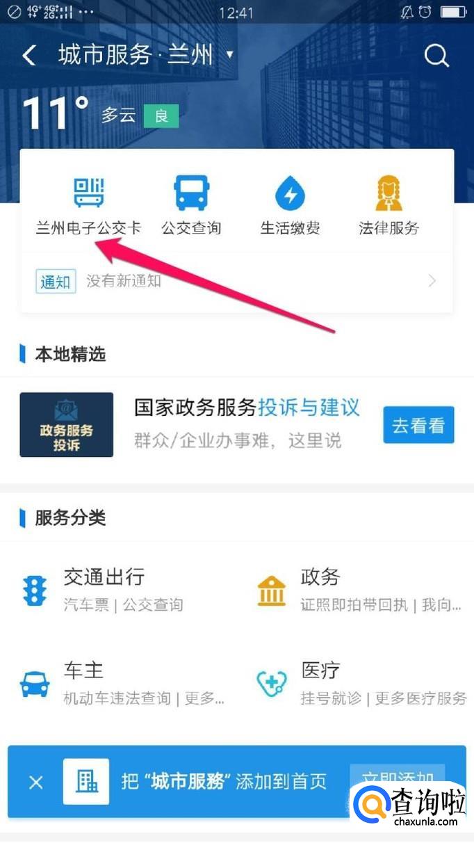 手机打开支付宝后,在应用程式里面找到【城市服务】,如果找不到的话直接在上面的搜索栏里面进行搜索【城市服务】。