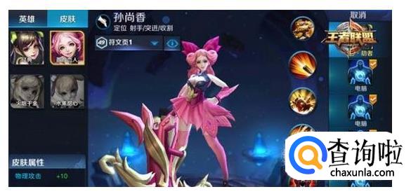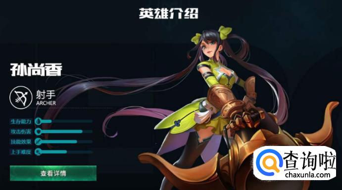 我们找到孙尚香,然后点击进入英雄介绍界面,这里可以看到孙尚香的数据信息和各种皮肤。