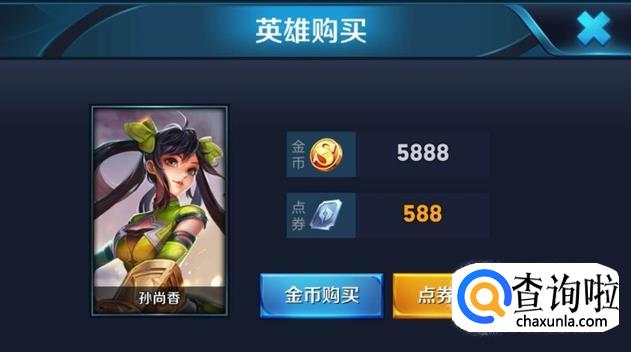 然后点击购买,直接用金币即可购买孙尚香。