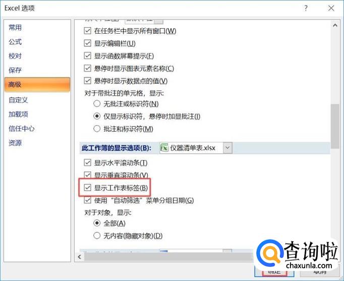 弹出的界面,我们将显示工作表标签的勾选框给勾选上,然后我们点击确定就可以了。