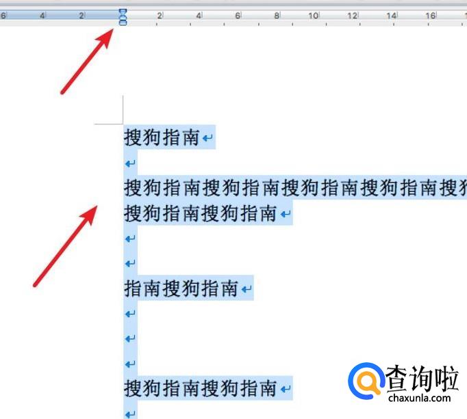 松开鼠标后,就可以看到选中的这些段落首行全都缩进了二个字符了。