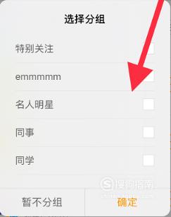 点击“加关注”后会弹出一个“选择分组”的对话框,你根据用户类型选择合适的分组就可以了。