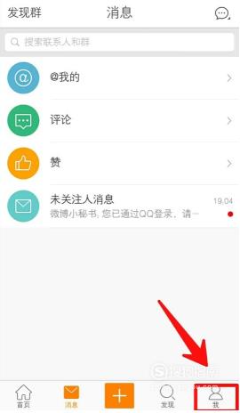 打开手机版新浪微博APP,点击进入“我”页面,如下图所示。