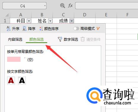 点击表头筛选图标,然后选择按照颜色筛选,选择粉红色,若你想显示不重复的数据,你就选择下面“空”的选项。