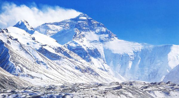 那么,云在什么高度生成呢?前人总结出一个公式来计算云的凝结高度,它与气压层高度、气温、露点温度有关。根据1959年和1975年4月在北坡绒布寺站的无线电探空气象资料,4月该站上空400百帕气压层的月平均高度为7482米,平均气温为-24.2℃,平均露点温度为-33.2℃,平均气温随高度的递减率为每100米减少0.66℃。有了这些数据,就可以计算得出,云的凝结高度差值为1364米。加上400百帕气压层的平均高度,得到云的凝结高度平均为8846米,与珠穆朗玛峰的海拔高度8844米非常接近。