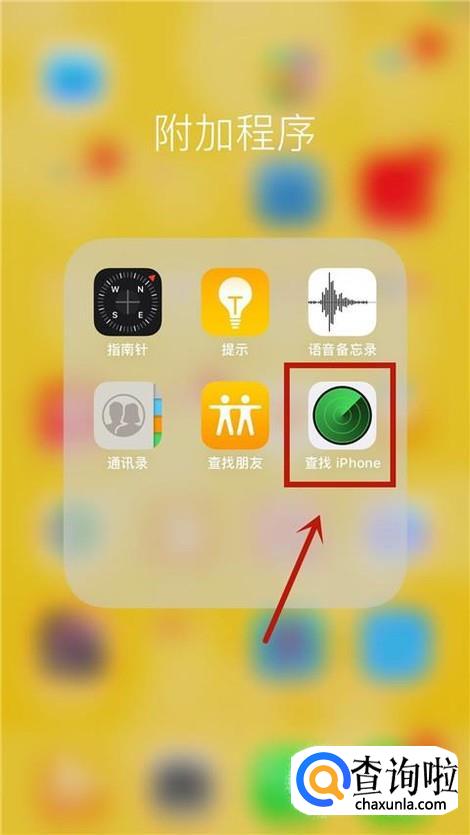 首先在朋友手机上找到查找iPhone并点击它,如下图所示。