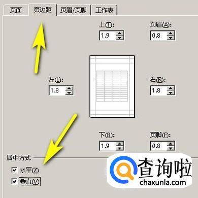 再点击:页边距;接着,在居中方式这里分别勾选“水平”和“垂直”;再点确定即可。