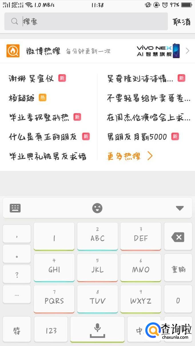 点击搜索框之后,就会有实时的微博热搜前10,想要查看更多热搜,点击下方的“更多热搜”。