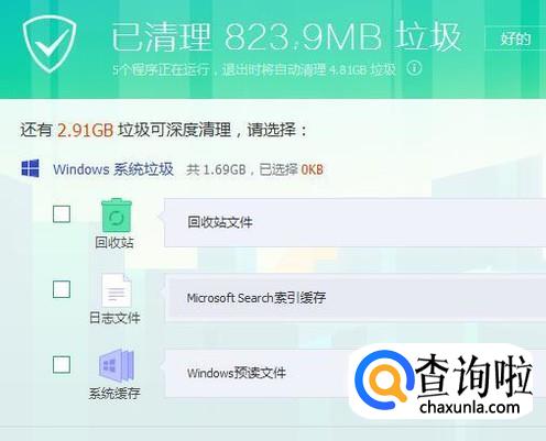 然后等待垃圾扫描完成,如下图所示。