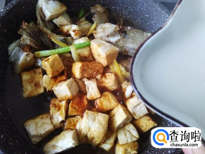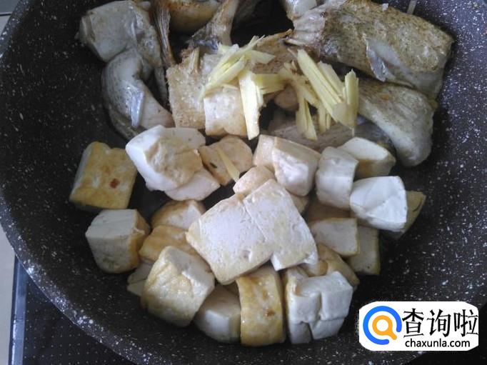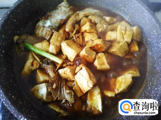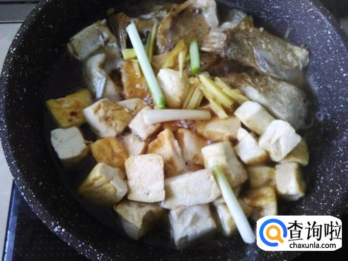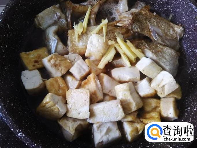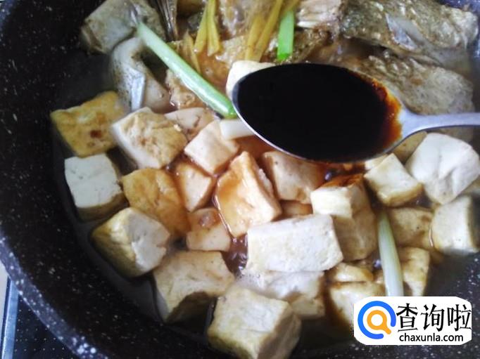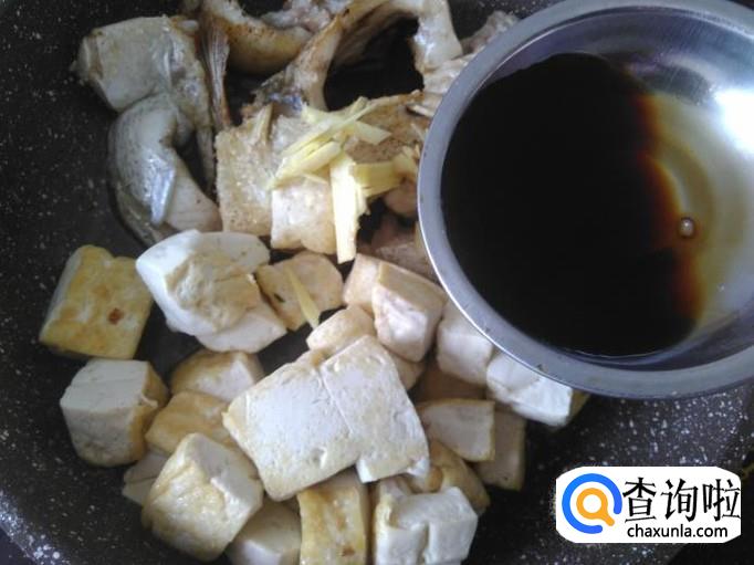 鲢鱼腩300克。豆腐2砖,姜丝、香葱适量,生抽2勺,老抽1勺。
