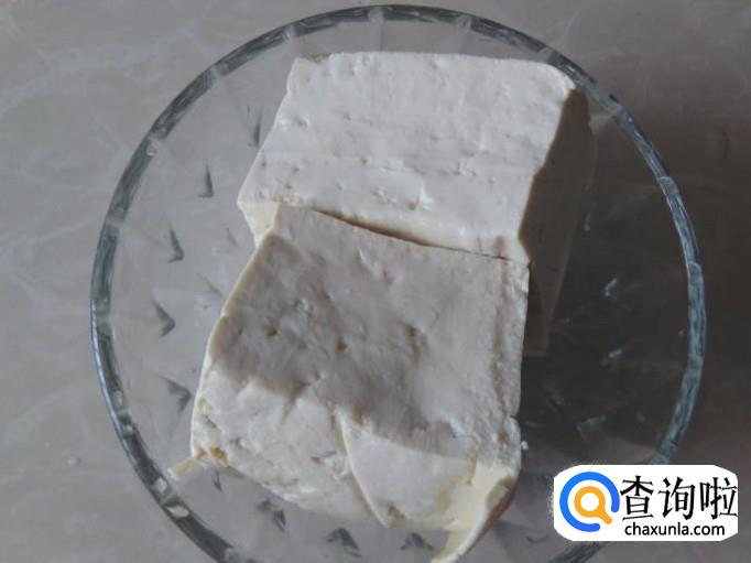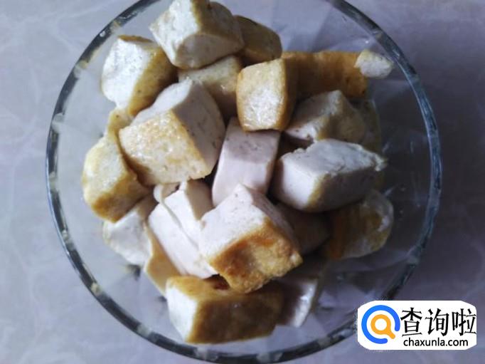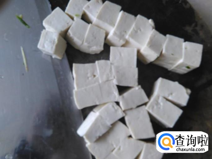 豆腐切成小方块,用1勺生粉加水调好备用。