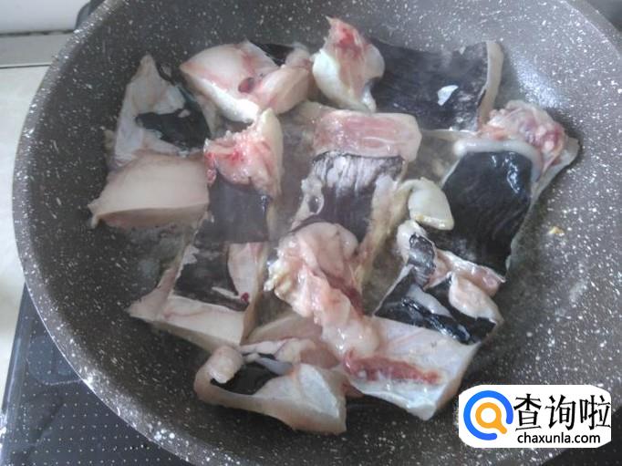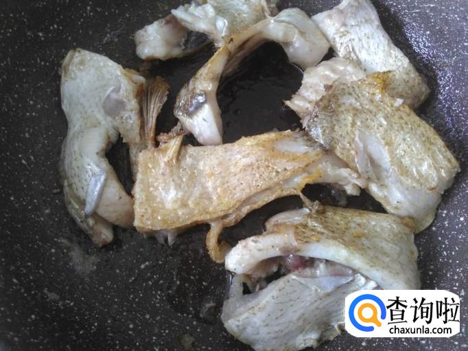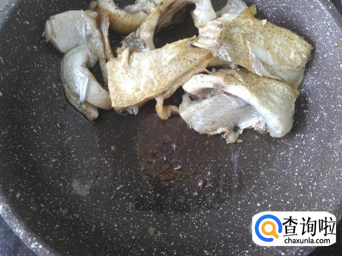 煎7分钟左右,把鱼两面煎得焦黄色后铲到锅边。。