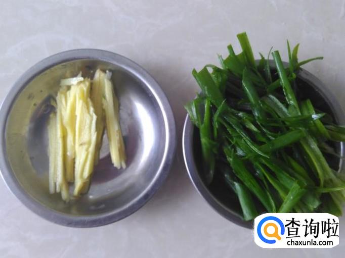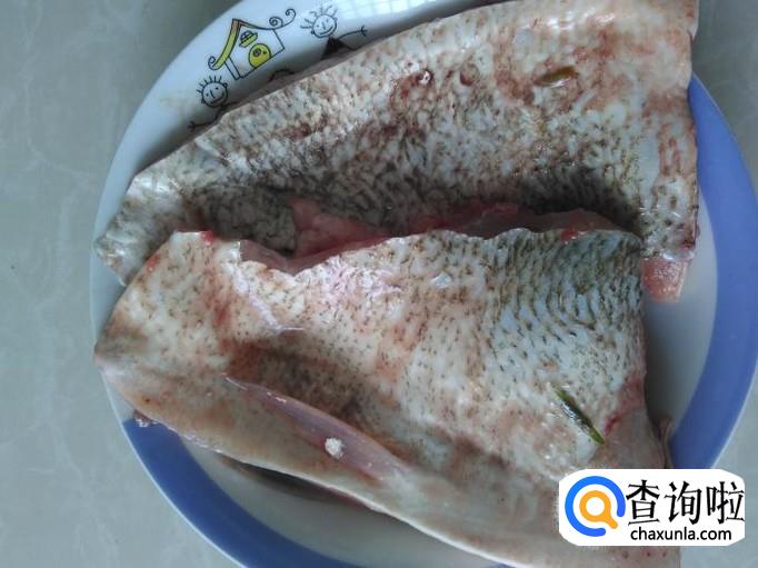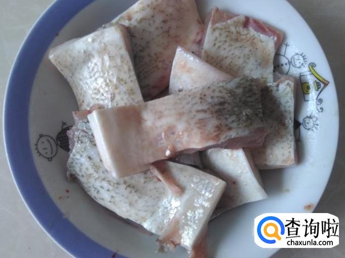 鱼腩切成一块块,姜丝、香葱丝准备好。