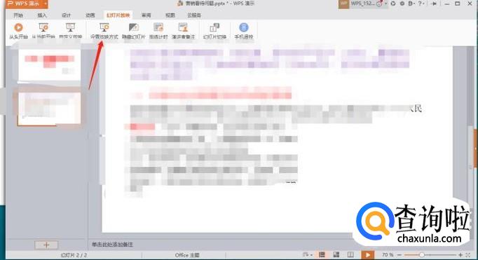 当你点击“是”之后,系统会自动保存播放的时间,然后你就需要回到ppt界面,点击“幻灯片放映”-“设置放映方式”