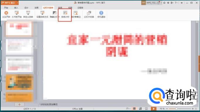 在幻灯片放映中,可以看到有“排练计时”这一个选项,点击“排练计时”