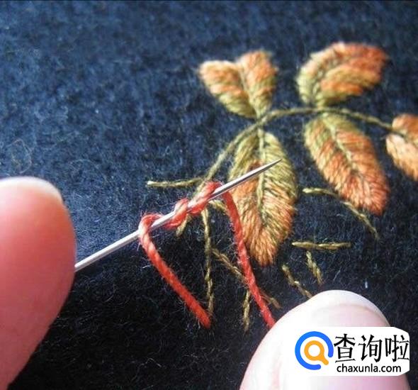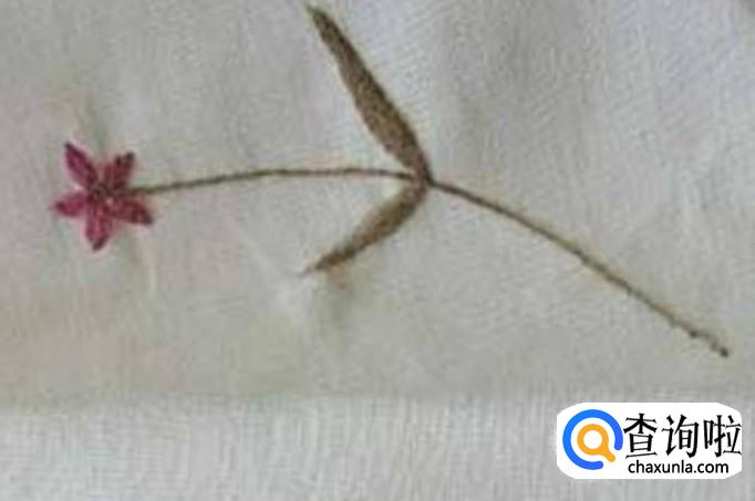 最后就是绣叶子,绣叶子的方法和绣花朵的方法是一样的,一根线直接拉完,斜着拉,使叶子看起来更加修长。
