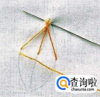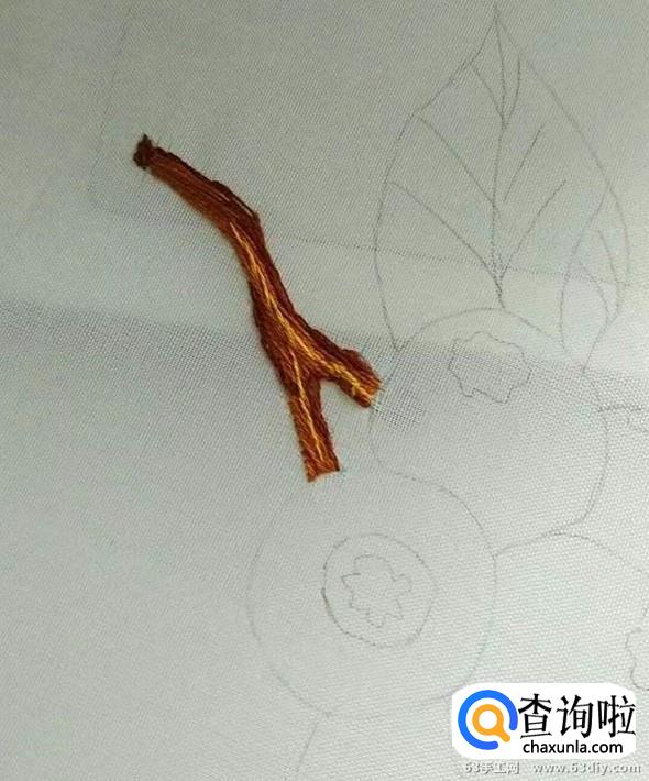 绣完花蕊后,接着用这根线绣花的茎,如下图。