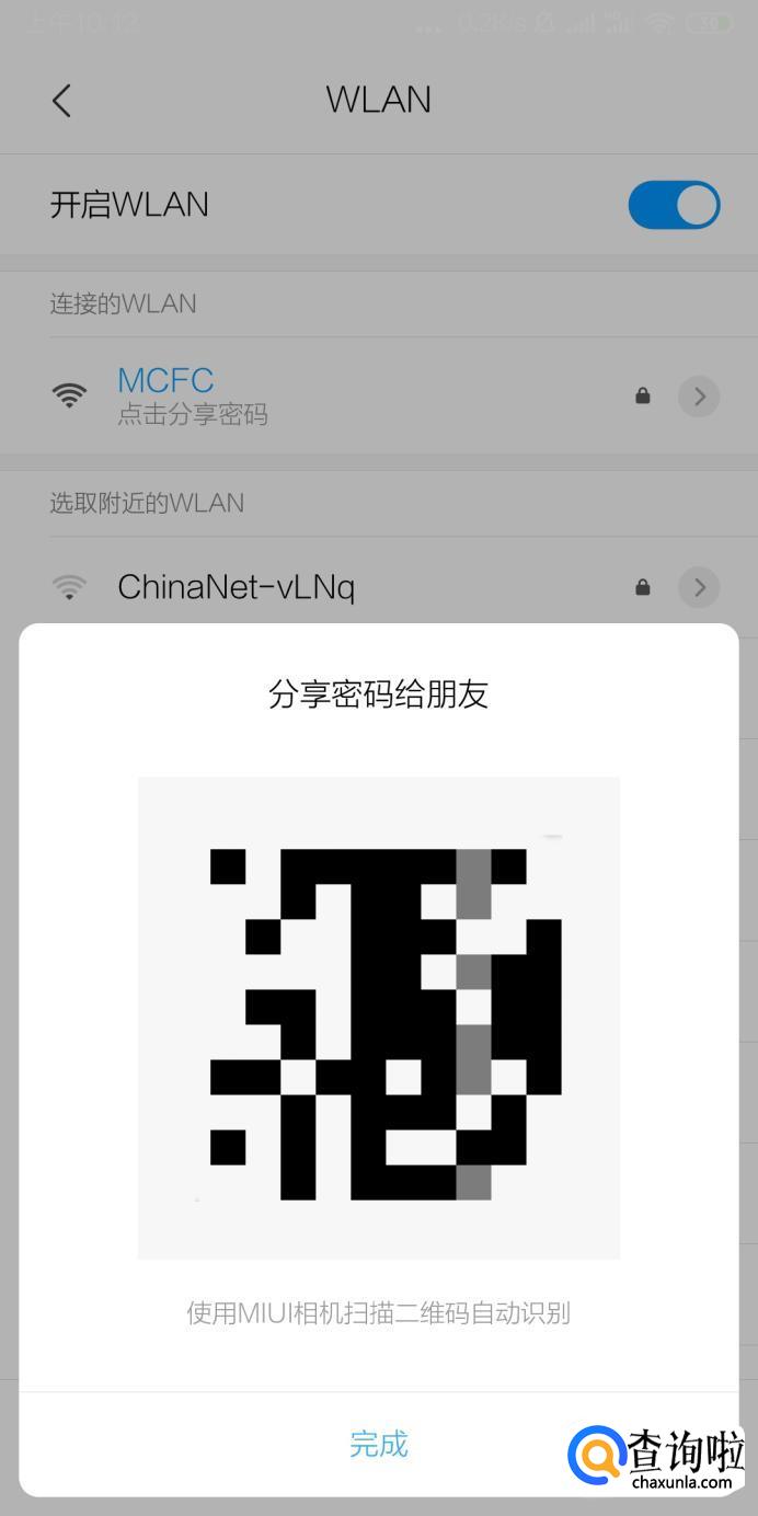 用手机截屏的方式截取并保存当前WIFI分享的二维码。