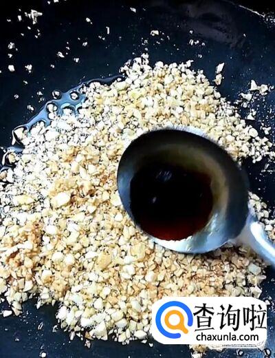 接着我们在锅中倒入适量的油,放入蒜末,加入适量的蚝油,酱油,盐,白糖,翻炒均匀