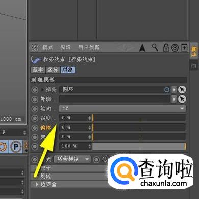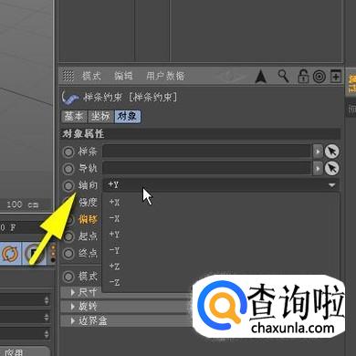 鼠标移到下面样条约束属性面板中,点击“轴向”下拉按钮,在弹出的列表中选择+Y