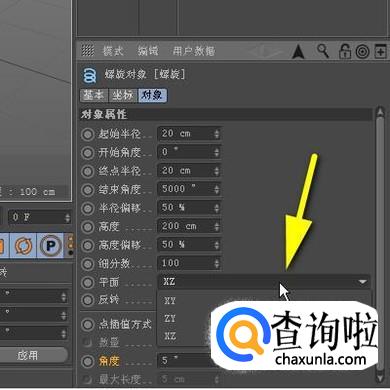 接着,在“平面”这里点击下拉按钮,弹出的列表中选择:XZ;那么螺旋样条就竖起来啦。