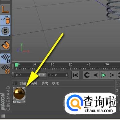 接下来,要给弹簧添加金属材质。我们可以直接调用c4d内置的金属材质。