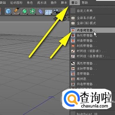 鼠标点击菜单栏的“窗口”;在弹出的下拉菜单中点:内容浏览器