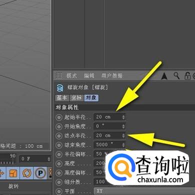 即新建了一个螺旋对象啦。在视图中已有了螺旋样条。现在这个螺旋样条不是我们想要的。需要对其属性进行一些设置。