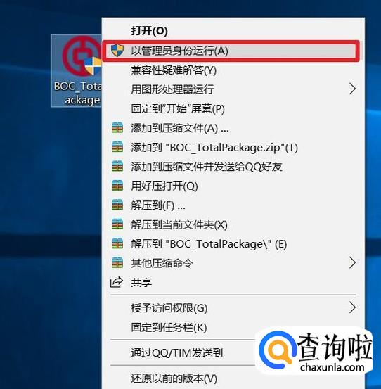 找到“安全控件”下载的目录并鼠标右键单击单击它,在弹出来的菜单中选择“以管理员身份运行”。