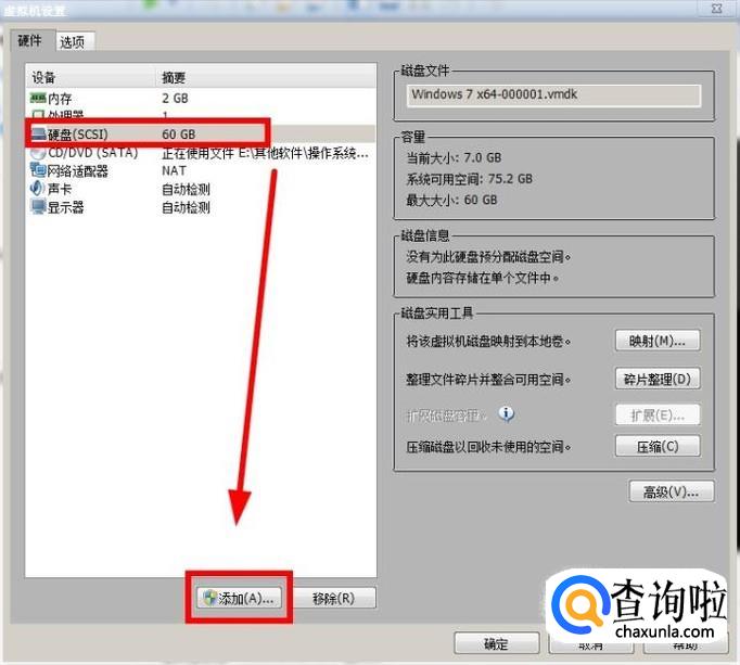 找到“硬盘”选项,选择“添加”