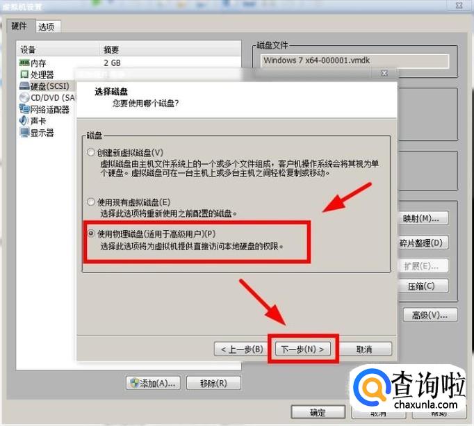 选择“使用物理磁盘(适用于高级用户)”,然后点击“下一步”