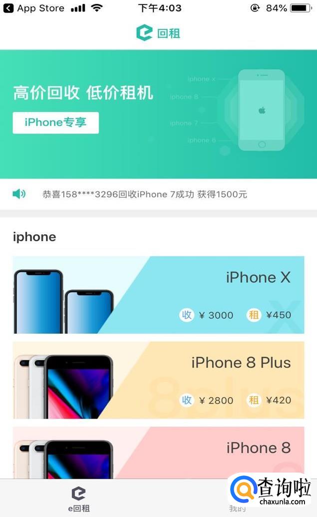 E回租是一款专门为苹果手机用户推出的手机回收APP,用户通过线上申请回收,系统会根据用户提供的手机信息对手机进行相应的估价,用户可以根据手机估价选择是否下一步提交申请审核,线上审核通过后用户可以就近选择线下网点进行回收。同时平台还推出手机租赁业务,用户可以根据自己的需求多样化选择。