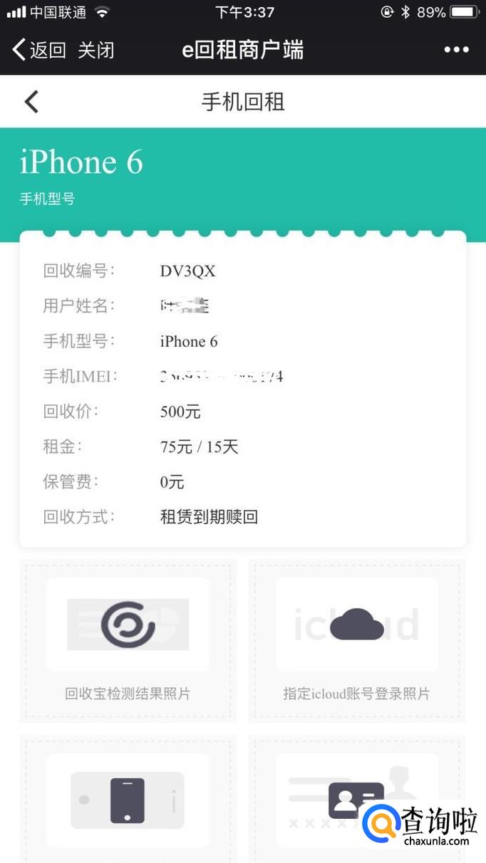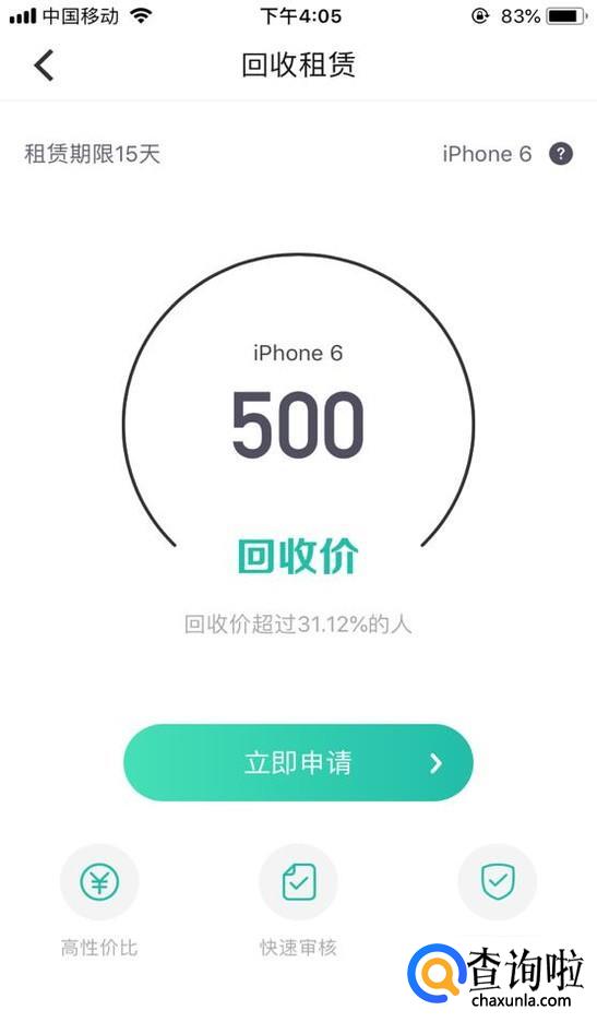 根据自身手机型号点击相应界面,系统会自动评估价格,如需要办理回租业务可点击“立即申请”。