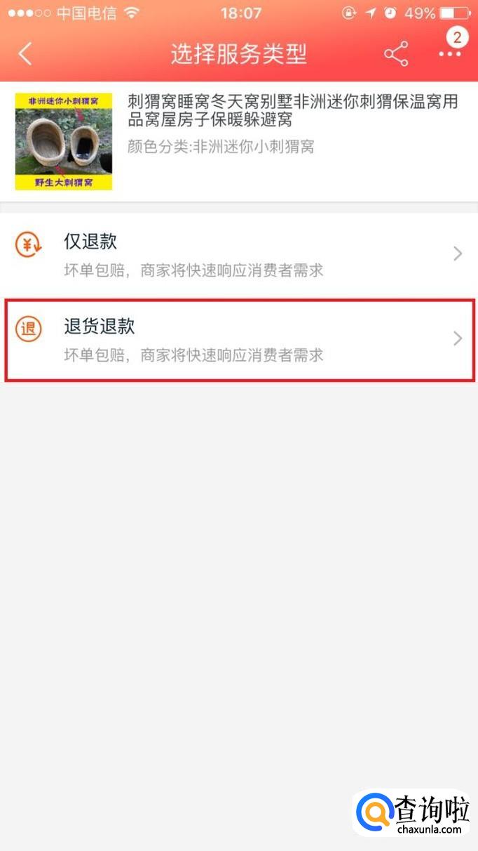 在退款原因右边点击“选择”,选择一个退款的原因。