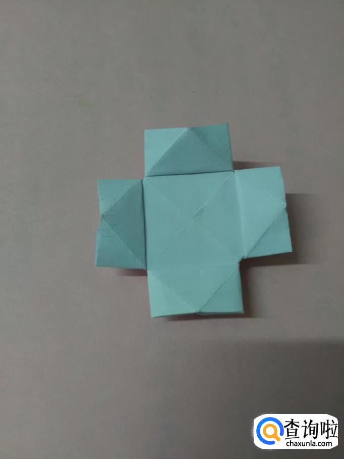 把上方的长方形向上立起来,其他三个长方形向下折下去,一把小椅子就折完了。