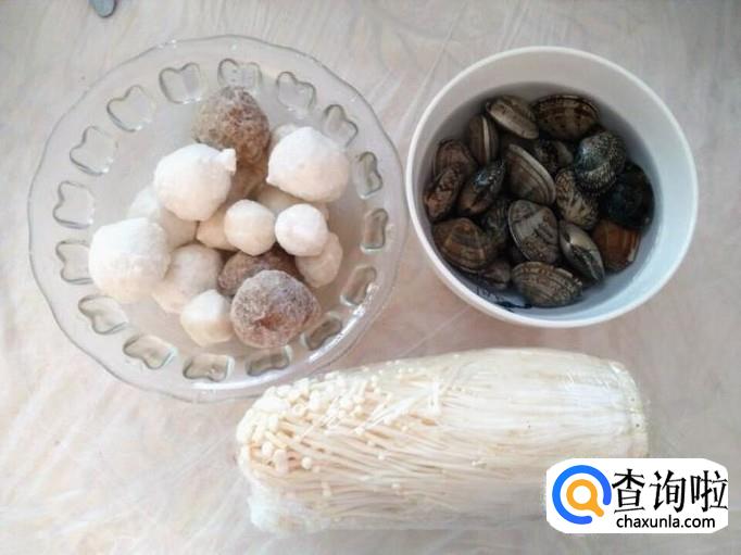 花蛤蜊400克,鱼丸200克,金针菇适量