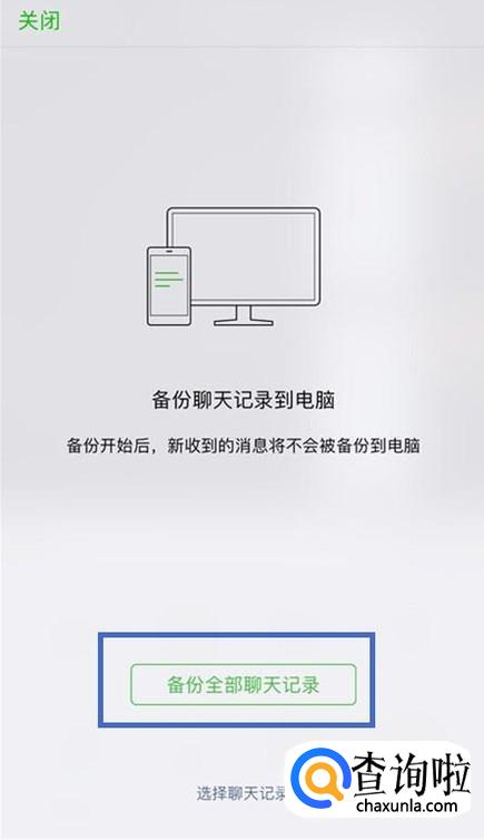然后在我们手机微信中点击备份全部聊天记录,如下图所示。