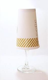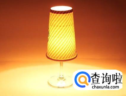 需要使用时,揭开纸杯,在玻璃高脚酒杯里点上一根蜡烛,再把纸杯(灯罩)盖回去,就是一个迷你小台灯。