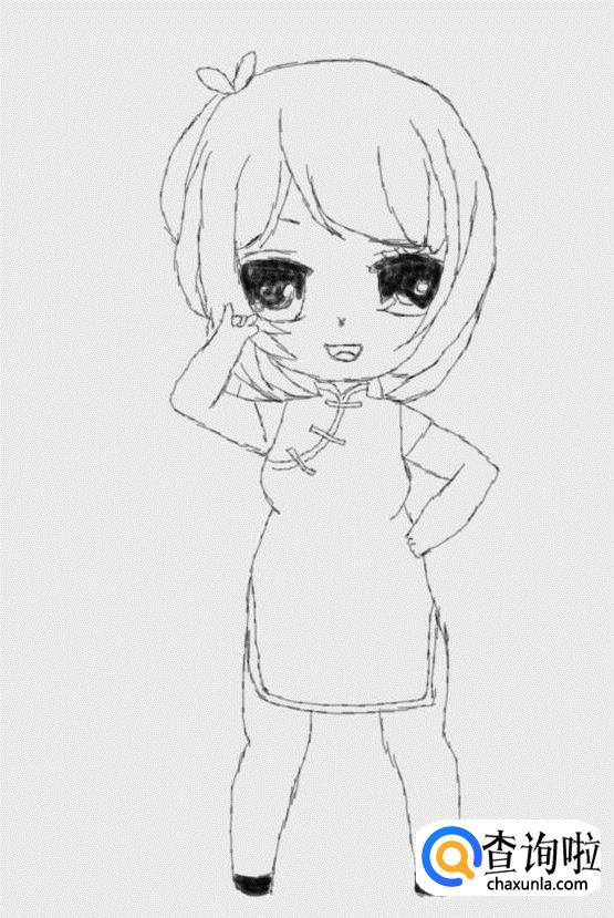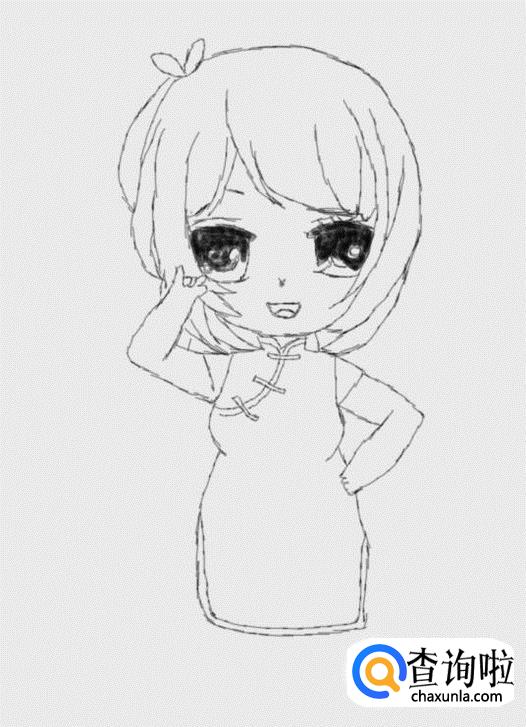 最后再在胳膊的下面画出下垂的头发,这样我们的奇迹暖暖就画好了,如图所示: