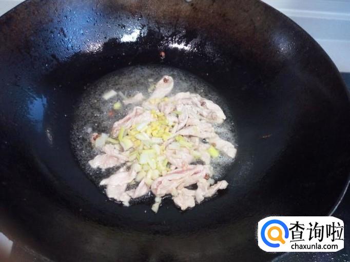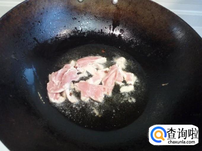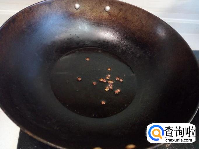 锅内放入油加热,油热后放入花椒爆锅,然后放入肉翻炒。
