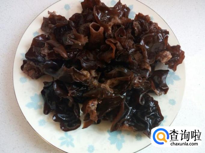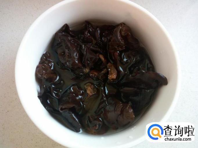 用温水快速泡发木耳,把泡发好的木耳收拾清洗干净,攥干水分,装盘备用。