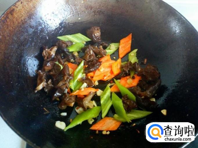随即放入木耳大火爆炒。