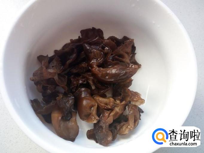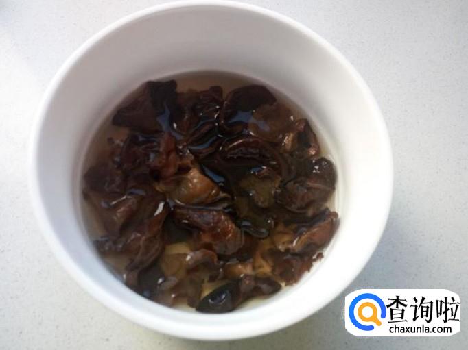 用温水快速泡发木耳,把泡发好的木耳用水洗净,攥干水分,备用。