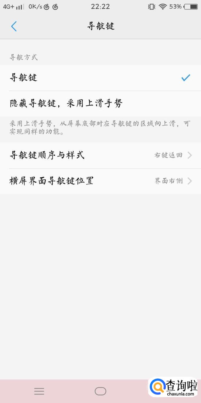 点开导航键,可以看见导航方式下有导航键和隐藏导航键。