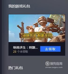 接着点击绝地求生右侧的去领取,如下图所示。