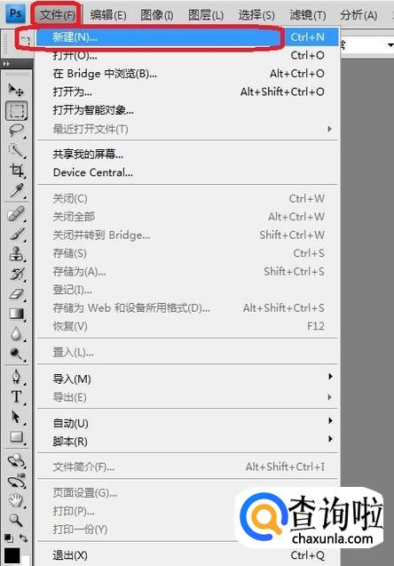 然后,我们打开PS软件,点击“文件”,“新建”。