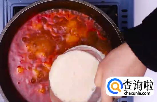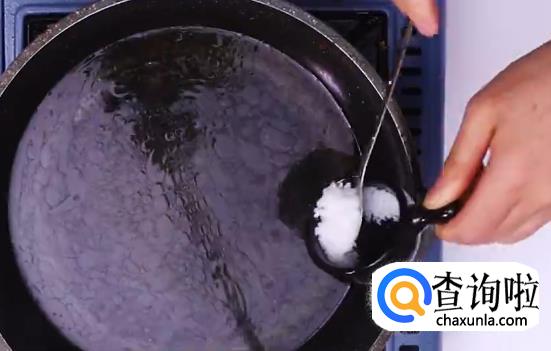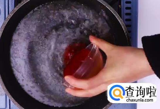 倒清水在国内,放入盐,番茄酱搅拌成酱汁。