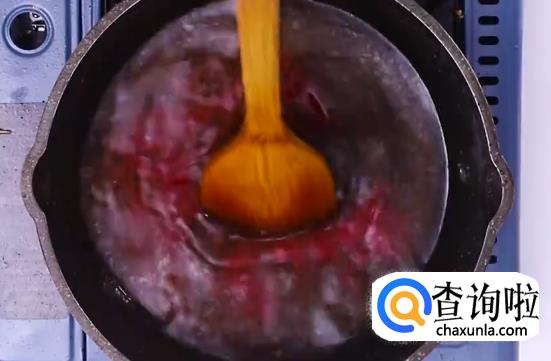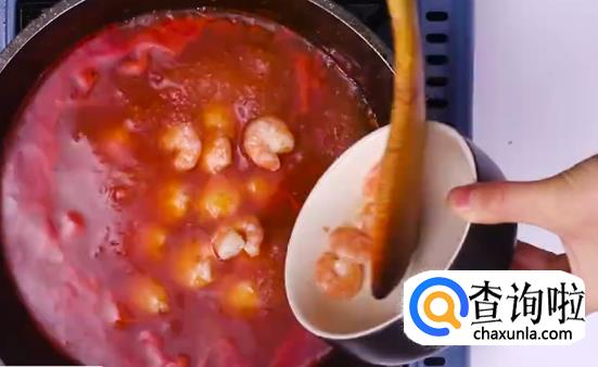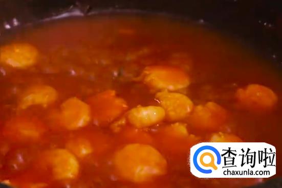 将虾仁,芡汁倒入锅中炖煮收汁。
