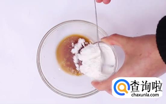 将鸡精,淀粉,水等混合搅拌为勾芡做准备。