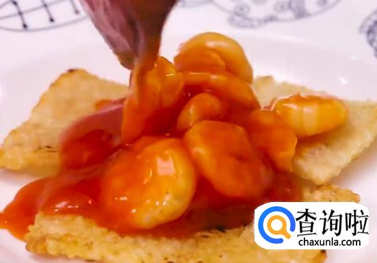 将锅巴在锅底干锅加热,然后倒上收汁后的虾仁即可。